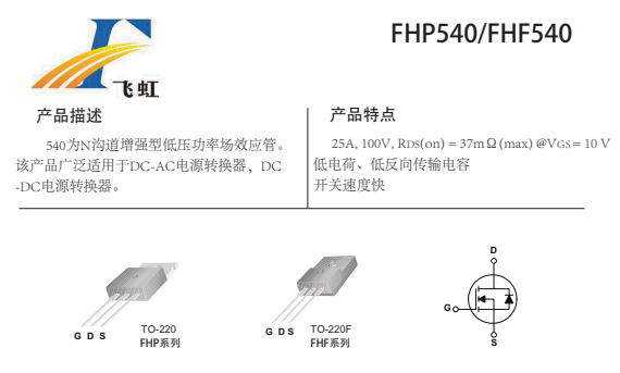 FHP540的主要封裝形式是TO-220、TO-251、TO-252三種,電壓轉換器低壓mos管腳位排列位GDS。這款540場效應管產品具體參數:Vgs(±V):25;VTH(V):2-4;ID(A):280;BVdss(V):100。RDS (on) = 6.5mΩ(typ)@V GS =10V。具有低電荷、低反向傳輸電容開關速度快,內阻低的特點
