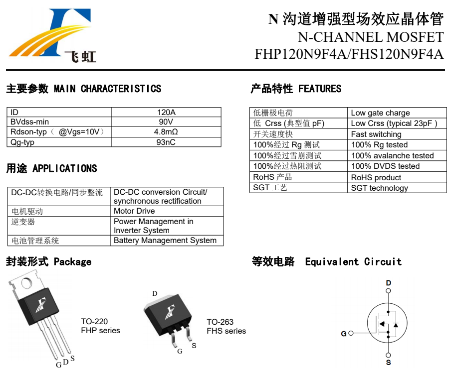 以上6款MOS管型號:FHP100N08C、FHP110N8F5B、FHP120N9F4A、FHP130N10A、FHP4410A、FHP170N1F4A的型號參數數據均通過實際進行測試得出,具體在電動車控制器中的使用,建議開發工程師進一步取樣測試。畢竟不同的性能以及需求對應要選擇的MOS管還是會有差異的,詳細參數規格表可登陸“飛虹電子”網址。